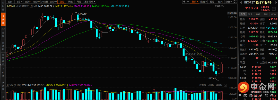 医疗服务:今日医药板块出现较大涨幅,且主要是板块内较为疲软的CRO带动,也证明了之前的观点,即医药板块在当下的估值里,还是比较有性价比的。所以依旧保持之前的观点,医药领域里的优质领域及个股还是可以逢低参与的。