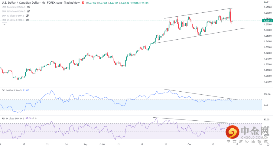 美/加在图中显示出清晰的看跌吞噬形态和顶背离信号,暗示价格回落的风险,关注1.3710以及道下轨1.3610等位置。另外,油价的短线企稳也给加元带来一定的助力。在市场重新回归强势美元逻辑之前,包括加元在内的非美货币能否迎来短暂的喘息空间?
