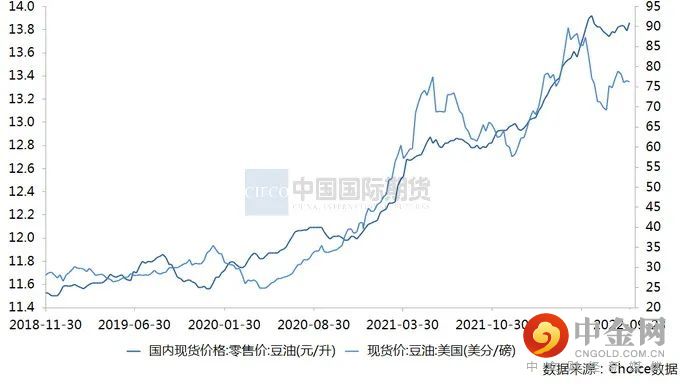 图2-3:美国豆油现货价、豆油桶装油现货价