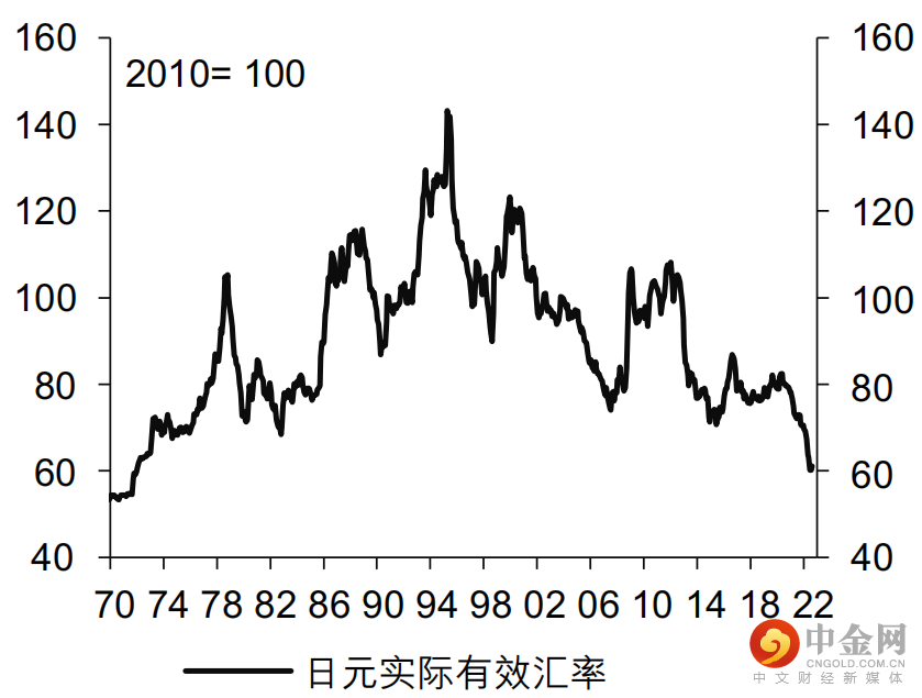 2.日元实际有效汇率目前处于1971年以来的最低水平
