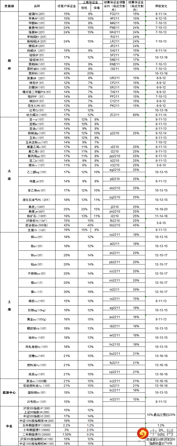 交易提示 | 期货交易保证金率一览 日常及临近交割月保证金收取标准