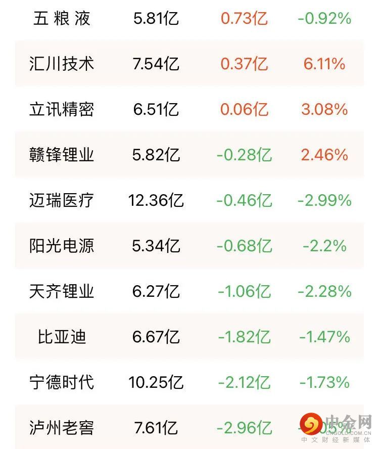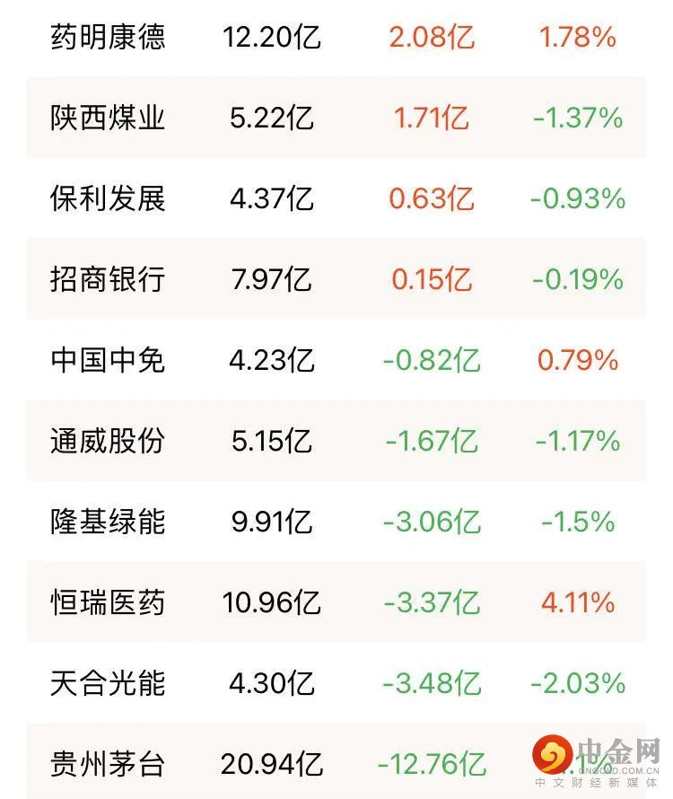 北向资金净卖出44.25亿元,贵州茅台、天合光能、恒瑞医药分别遭净卖出12.76亿元、3.48亿元、3.37亿元。药明康德净买入额居首,金额为2.08亿元。