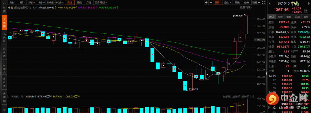 中药:今天不止是中药,整个医药板块仍旧保持了强势,只是今日最亮眼的位置归属于中药这个分支。医药板块已经反复强调多次,是可以长期关注的,不过短线也累积了一定的涨幅,需要谨慎一下,但不妨碍整个板块从估值较低的区域向上前进。