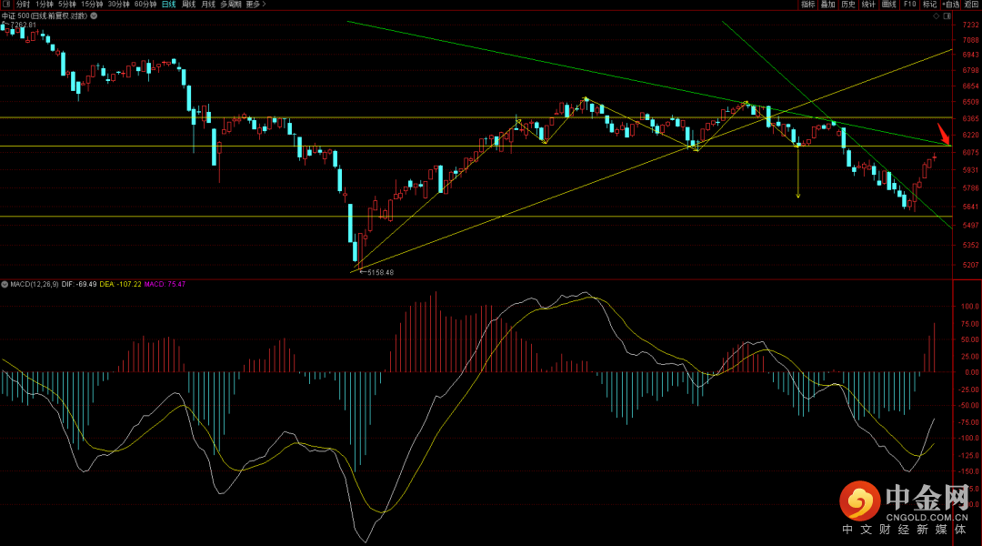 中证500表现强势,目前已经连续五连阳走势,后续行情需要关注5994点支撑是否跌破,在没有跌破之前大概率还不会出现像样的调整走势。而一旦跌破需要关注5831附近的平台支撑。