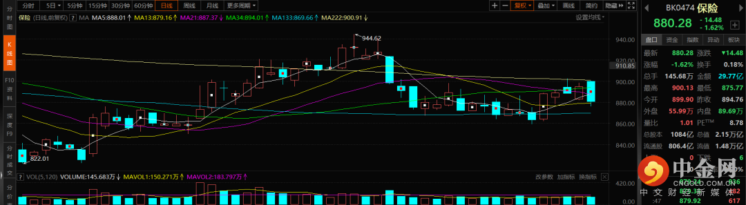 保险:保险这个行业,当下的基本面还是没有太多的亮点,叠加整个权益市场的疲软,以及部分资产的风险性,导致整个板块的估值处于一个不断下跌的状态。目前市场还是更关注于高景气度的行业领域,对于保险这类资产并不是很友好。