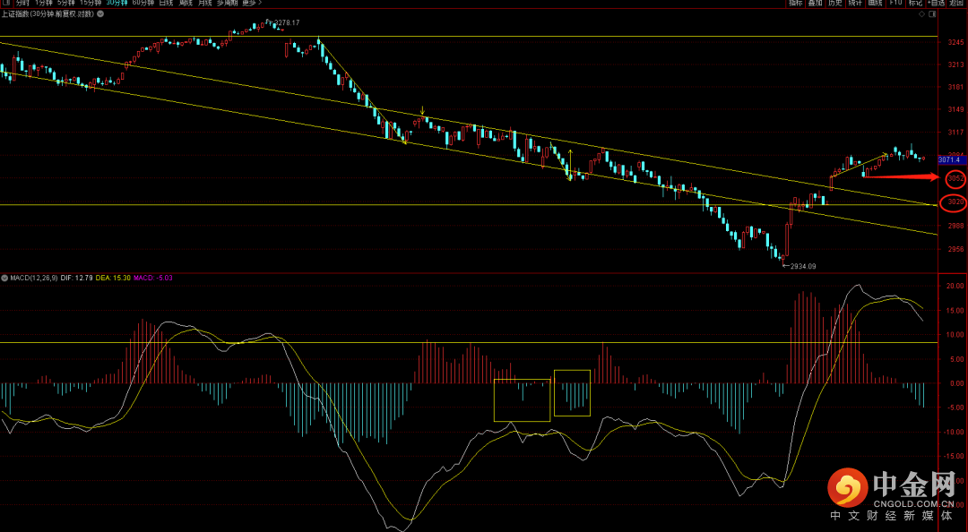 大盘短期出现连续两日缩量新高,短期由于十五分钟于三十分钟都出现背驰段结构,这个位置如果不出现调整后续大概率会有长阴出现,注意观察下方3010到3050区间支撑。在这个区间可以考虑逢低布局。大概率有望再次上升,而上方的强压大概率会出现在3100到3140这个区间,只有这个区间出现突破才有望回升至3200到3278这个区间。
