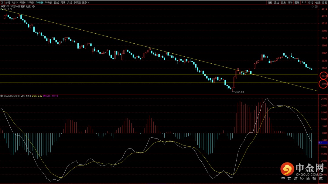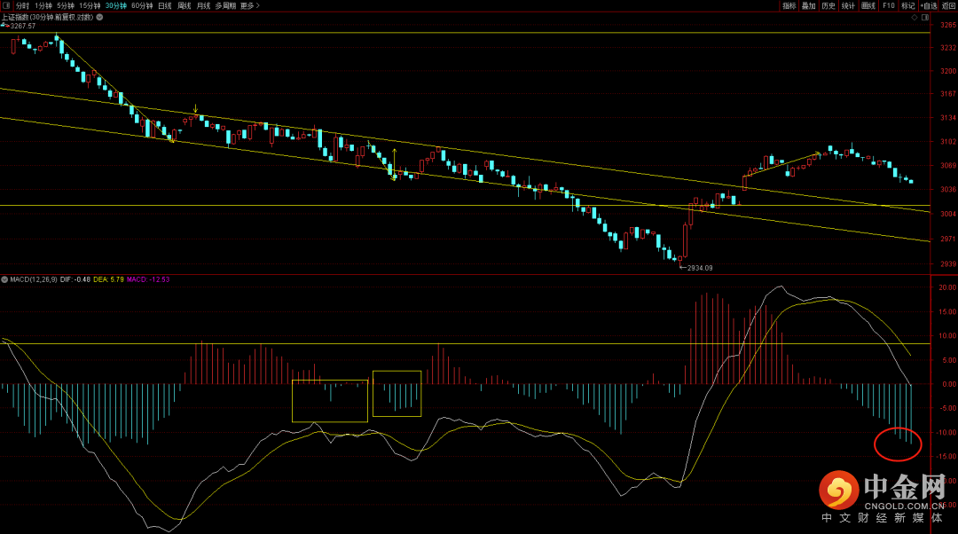 大盘在跳空向上后出现回补缺口,但由于量能极其萎缩后出现向下震荡下跌,目前已经跌破3050关口短期需要关注下方缺口3010附近支撑,在没有跌破为前提下有望再次出现新的上升走势,关注六十分钟的macd量柱,只有它出现滞缓才有望出止跌结构。