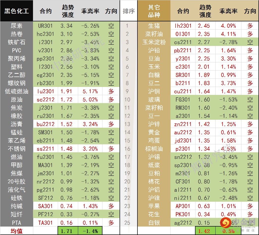 中期商品趋势榜 | 热卷空头排名持续居前(1018)