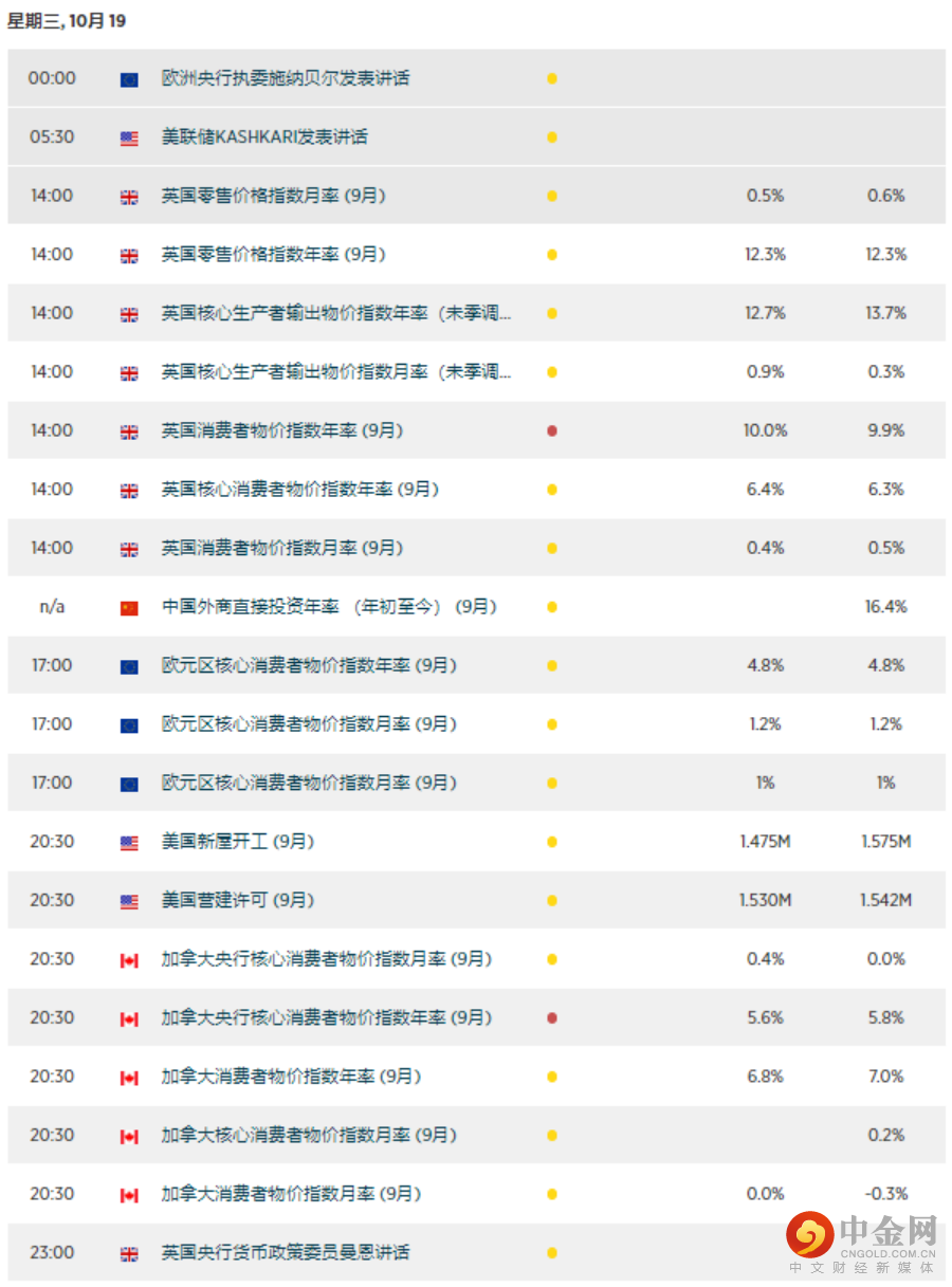 英国和加拿大将于今晚公布9月CPI数据,前者预计再上10%。特斯拉、IBM等将于美国周三盘后时间公布业绩。