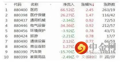 板块方面,医药、医疗保健、通用机械、电气设备等板块涨幅居前,保险、日用化工、房地产、半导体等板块跌幅居前。