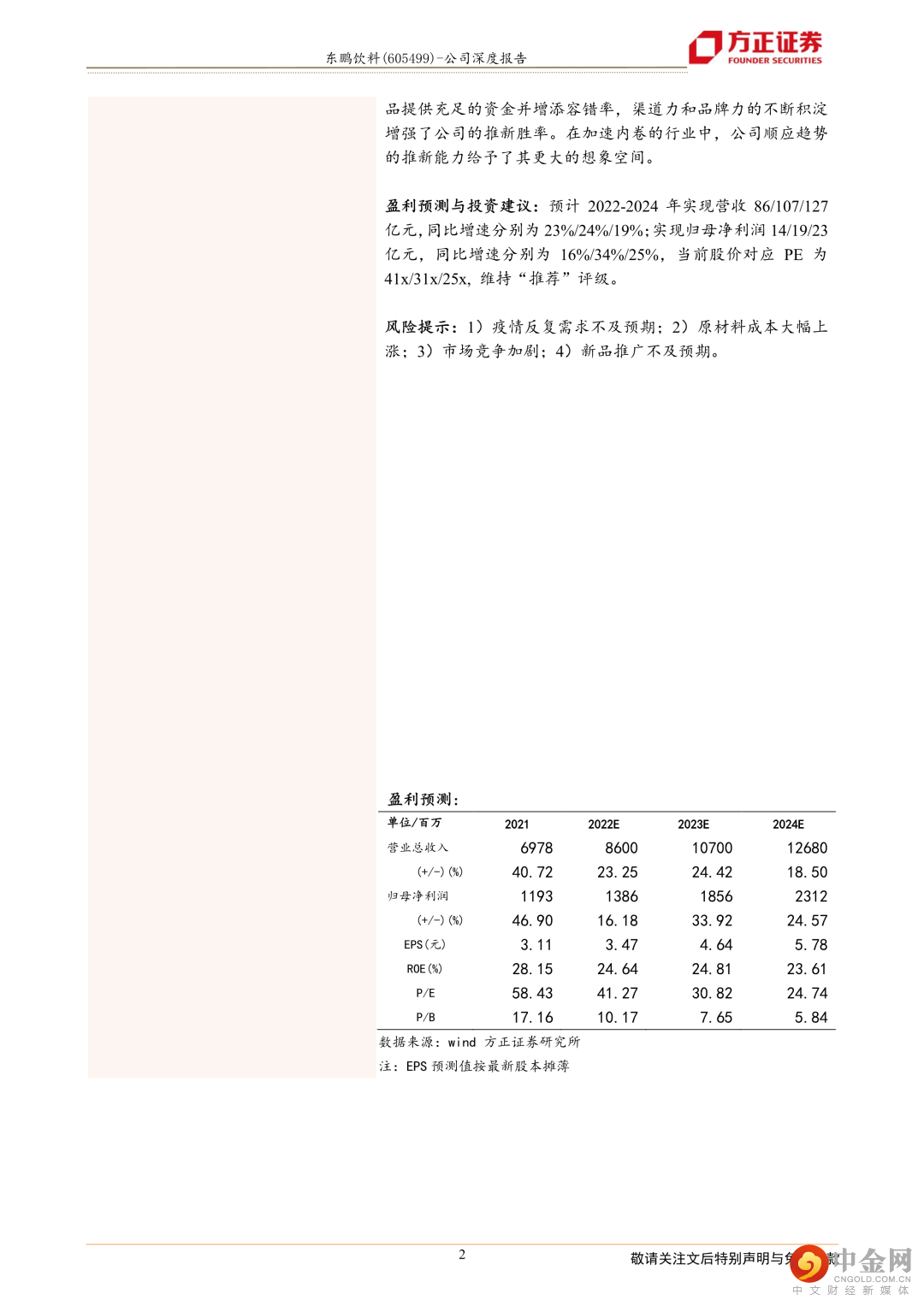风险提示:1)疫情反复需求不及预期;2)原材料成本大幅上涨;3)市场竞争加剧;4)新品推广不及预期。