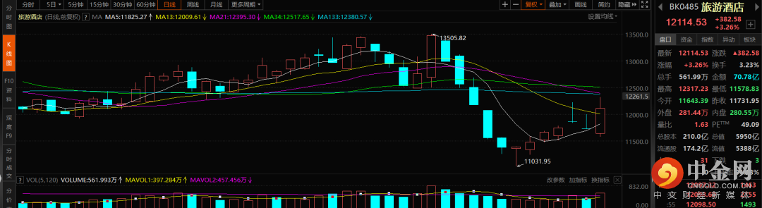 旅游酒店:同样是午间有相关传闻利好,使得午后旅游酒店出现较大涨幅。不过与半导体类似的是,并没有明确的官方消息确认,行业基本面仍较差,所以并不建议追高,还是继续观望一下后续事态发展。