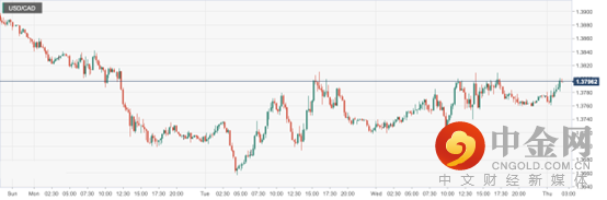美元兑加元周三收盘微幅上升后,今日开盘涨至1.3796附近,因指标10年期美债收益率升至14年高点,伴随加拿大通胀数据升温加剧衰退风险,使得加元下行承压。