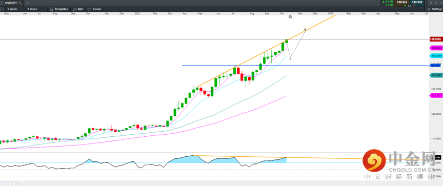 美元兑日元 USDJPY —— 周线图(10月20日)来源:CMC Markets