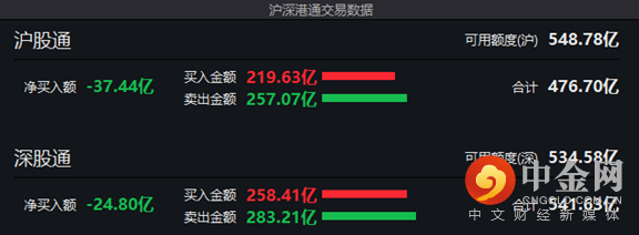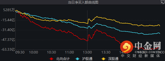 以每日额度余额口径,北向资金截至A股收盘净流出43亿元;以买卖成交额口径,北向资金净卖出62亿元。