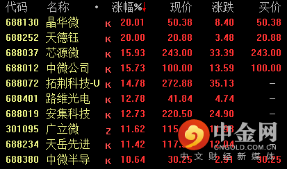 昨日半导体板块盘中强势拉升,截至收盘,晶华微、天德钰“20cm”涨停,芯源微、中微股份涨近16%,北方华创、康强电子、通富微电、大港股份等涨停。