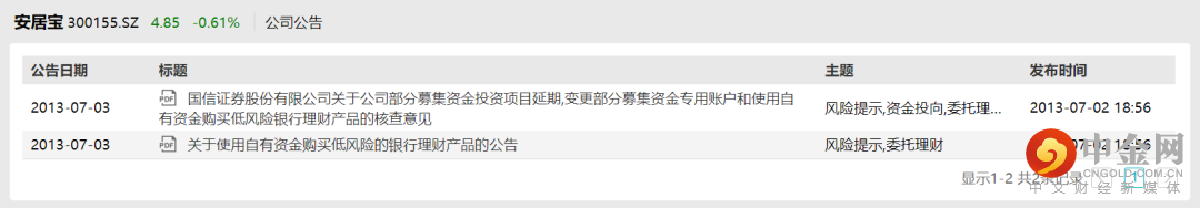 从本次公告的安居宝公司来看,2022年之前,也仅仅在2013年做过一次低风险的银行理财。