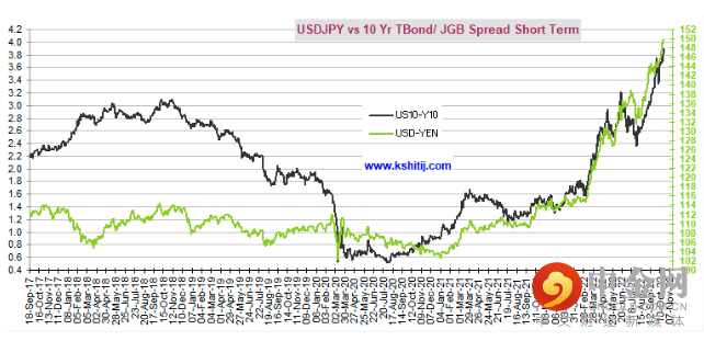 在这一背景下,美元兑日元汇率能够从年初的110关口一路升破120、130、140乃至如今的150大关,也就不足为奇了。君不见,10年期美债收益率年内逾越任何关键的整数关口,也几乎如“探囊取物”般简单吗?