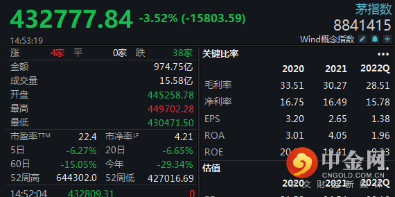 白马股代表的茅指数跌超3.5%。