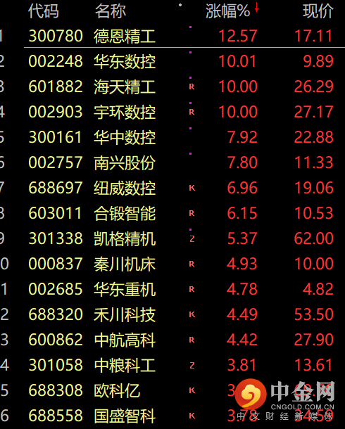 工业母机概念拉升走高,华东数控、宇环数控、海天精工涨停。