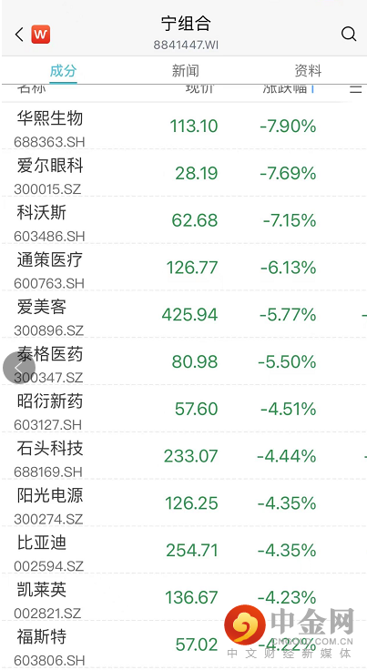 宁组合也大跌。