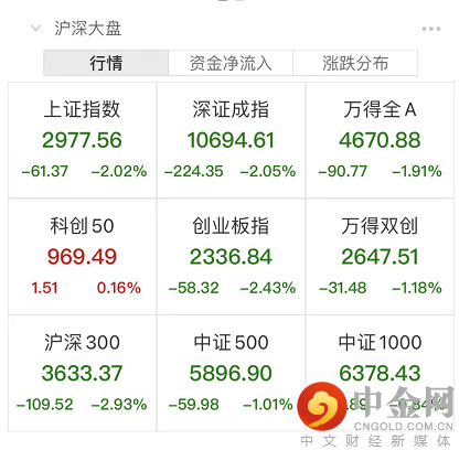 两市超3800股飘绿,今日成交8810亿元。截至收盘沪指跌2.02%,深成指跌2.05%,创业板指跌2.43%。