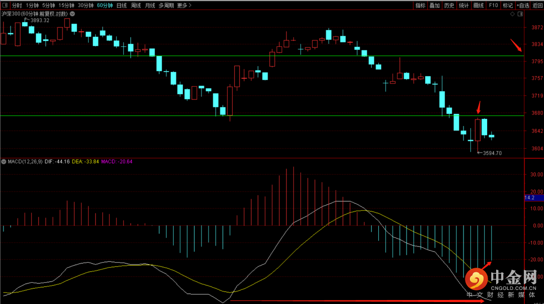 沪深300短期六十分钟macd如果能够持续收敛有望出六十分钟底背驰结构,届时有一笔反弹至3800到3830区间的走势,注意观察量能,在无量的状态下大概率在反抽后还有一次下行。