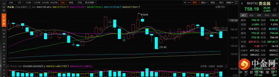 贵金属:昨日领涨今日领跌的现象在近期出现比较频繁,而贵金属在汇率贬值速度放缓之后且叠加市场情绪转暖的情况下,今日大跌虽然幅度较大但也属于合理范畴之内。贵金属这个板块并不受资金喜欢,虽然从中短期来看,行业基本面的逻辑是适合在当下宏观环境中进行配置的,但性价比可能不如黄金实物或者黄金ETF。