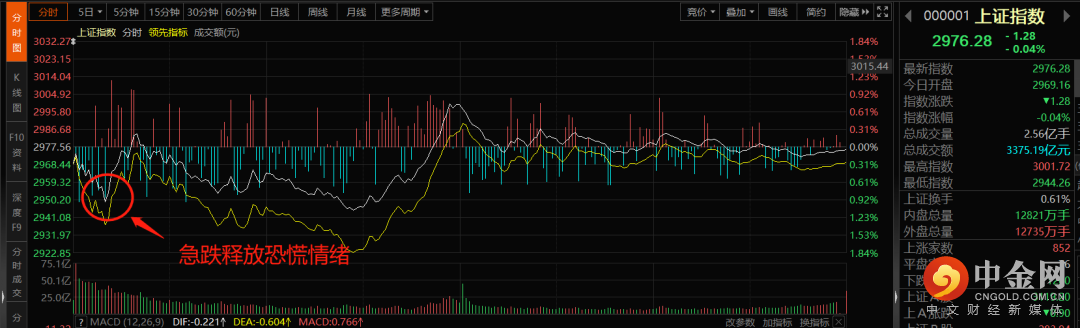 早盘开始,前日暴跌的导火索——外资的流出势头就有所改善,但市场依然刷新了这几天的新低,沪指一度接近了10月上旬的2934点低点,更像是恐慌的释放。