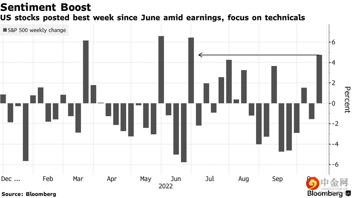 这位正确预测了今年美股暴跌的策略师认为,如果标准普尔500指数跌破其3605点的200周移动平均线,即比上周五收盘价低约4%,则该指数将反弹多达15%。Stifel Nicolaus & Co. 的策略师也持有类似的观点,他们在另一份报告中表示,随着通胀降温和经济衰退被推迟到明年第三季度,他们预计未来6个月该基准股指将升至4300点。标准普尔500指数上周五上涨2.4%至3752.75点,创下自6月以来的最佳单周表现,原因包括技术面支撑和一些公司报告的收益好于预期。随着交易员对通胀上升和鹰派美联储相关的叙事感到厌倦,看涨押注正在重新回温。