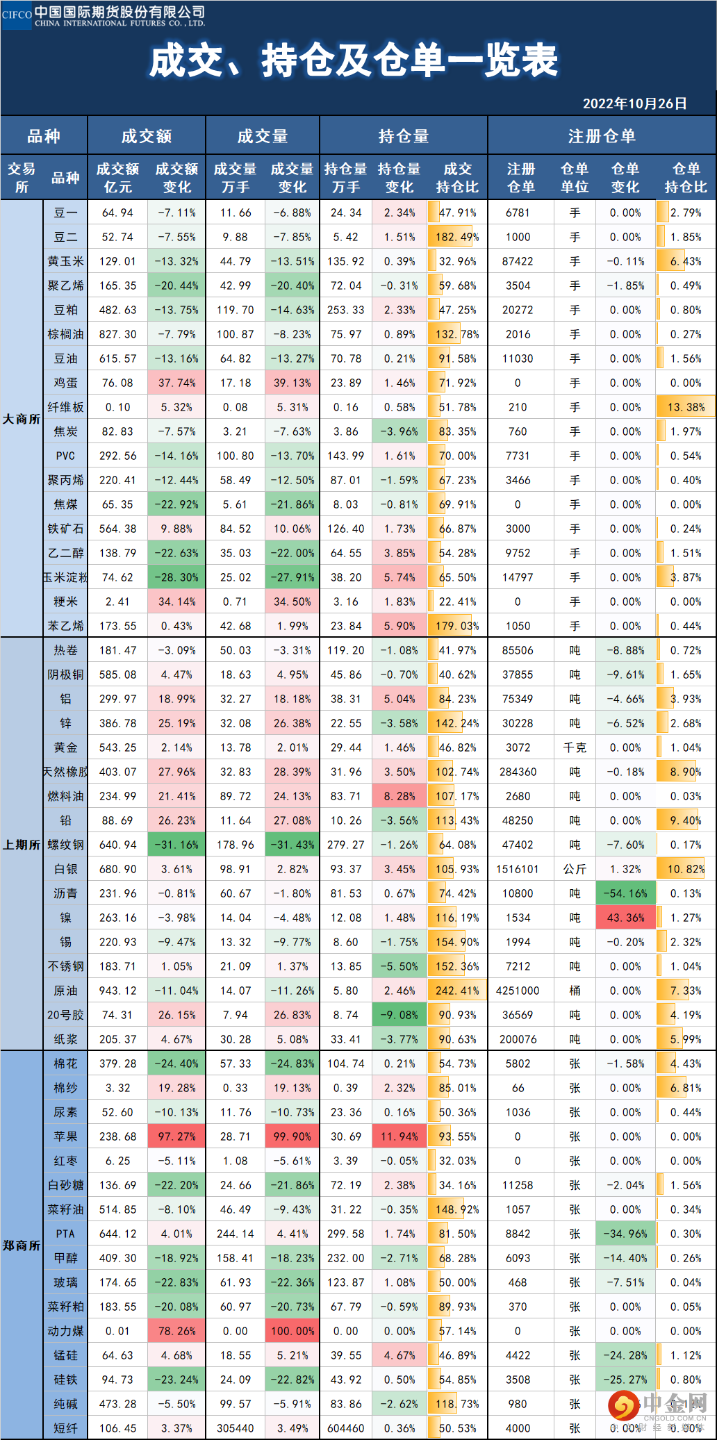 中期研究 | 基差、持仓及仓单一览表