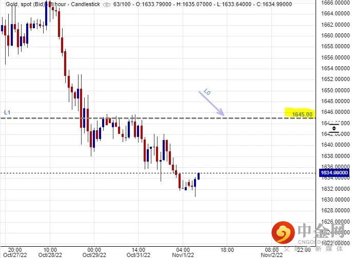 可以部署在$1,645美元左右建立淡仓盘,短线看淡金价一线至$1,609美元水平后止赚,止损在$1,653美元。