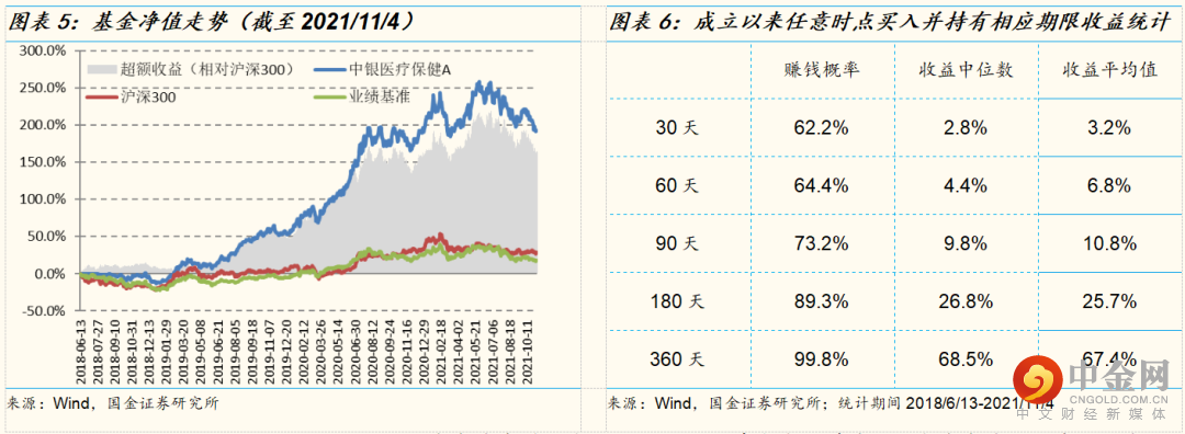 截至2021年11月4日,中银医疗保健A累计收益为192.17%,相比同期沪深300超额收益达163.65%。