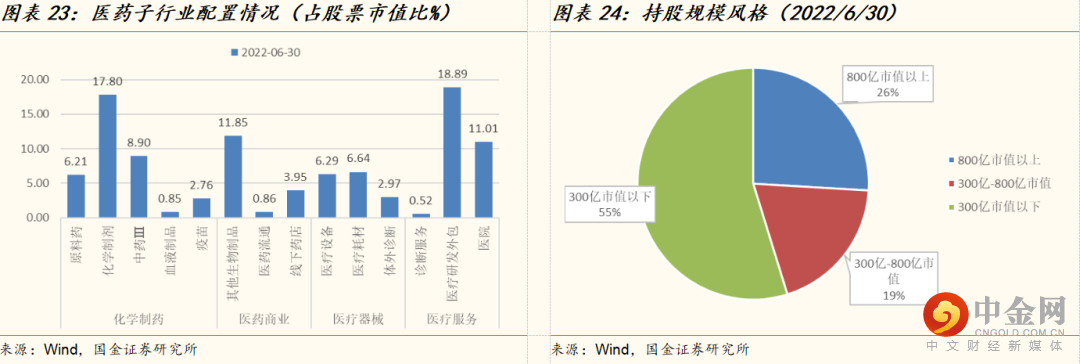 行业配置方面仍然维持相对均衡的配置思路,医药板块内各个子行业都有一定布局,其中医药研发外包和化学制剂仍是最为重仓的两个细分行业,2022年中报基金全部持股中两个子行业市值占股票投资市值的比例分别为18.89%和17.80%。与中银医疗保健A相比,基金今年在其他生物制品、医疗设备和医院子行业的持股比例明显增加。