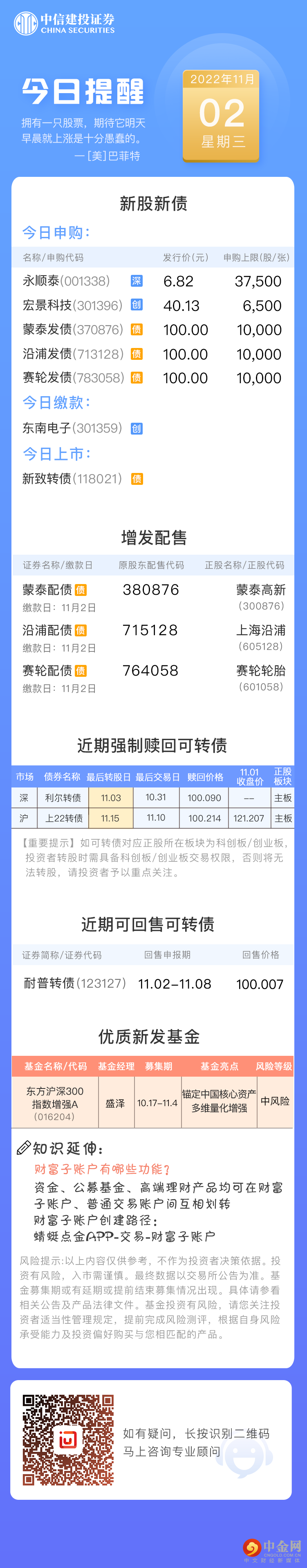 今日申购|永顺泰、宏景科技、蒙泰发债、沿浦发债、赛轮发债