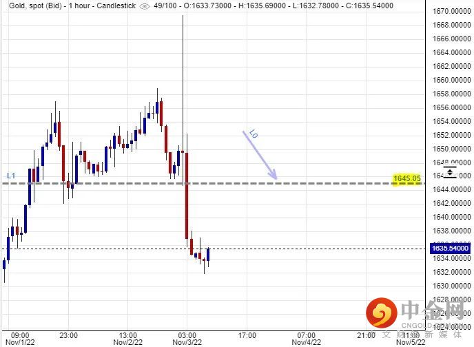 可以部署在$1,645美元左右建立淡仓盘,短线看淡金价一线至$1,609美元水平后止赚,止损在$1,653美元。