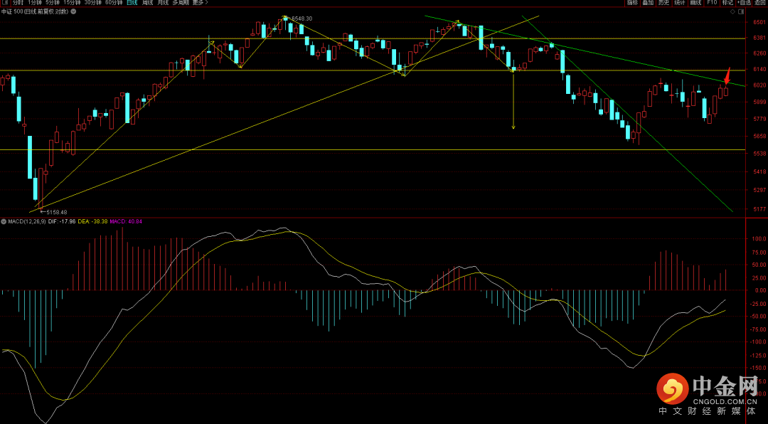 中证500再次来到下降趋势线附近,短期注意观察日线macd量柱是否呈现钝化结构,一旦如此调整也不会太远,而一旦突破有望回升至前期平台6400到6500区间。