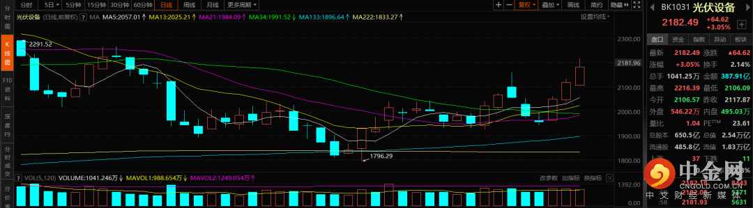 光伏设备: 光伏设备连续两日领涨,从侧面也能看出光伏类是整个新能源里面基本面较为优秀的分支。在冬季来临之际,能源问题将可能重新成为市场关注的焦点,而光伏设备在国外市场所能开拓的空间还是比较有想象力的。不过行业目前分支较多,投资该板块还是需要寻找高景气分支的龙头个股,否则可能看对方向却得不到收益。