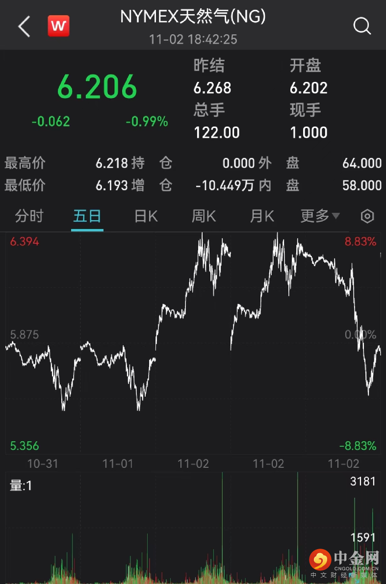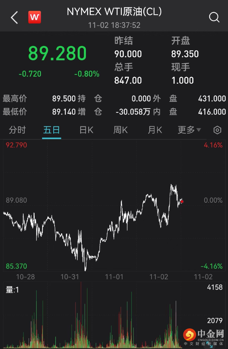美元一度走弱和美国石油库存下跌,令油价在美股盘中止跌转涨。美油WTI 12月期货收涨1.63美元,涨幅1.8%,报90美元/桶,盘中最高涨近2美元或涨2.2%。国际布伦特1月期货收涨1.51美元,涨幅1.6%,报96.16美元。美国天然气涨超8%,重上6美元整数位。