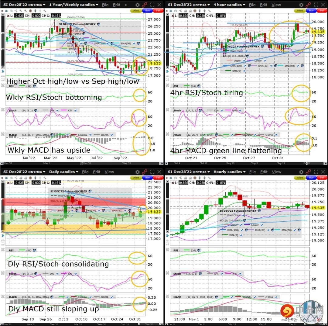 白银期货在形成了相比9月的高点/低点较高的10月高点/低点后,白银期货看起来正处于形成重要底部的后期阶段。