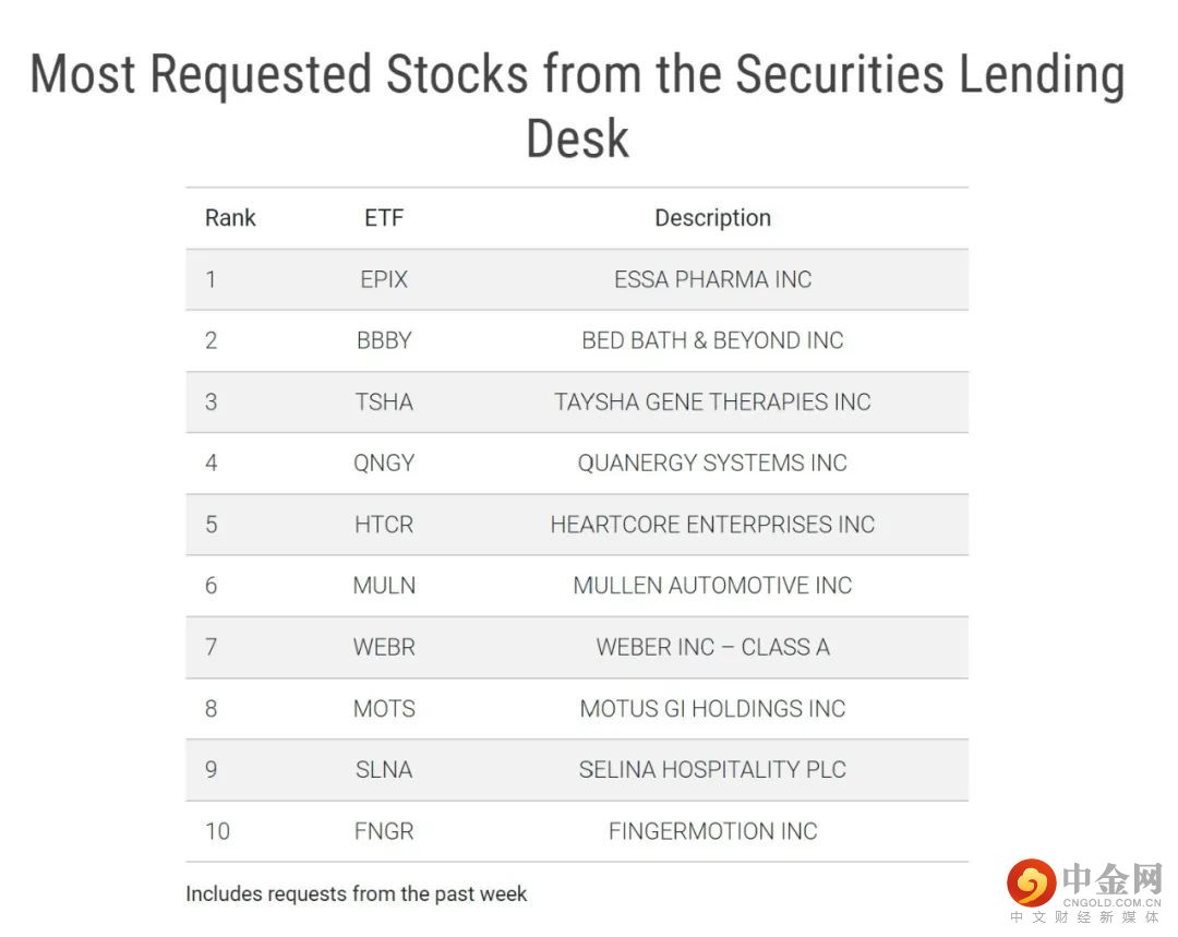 下表中列出的是2022/10/27借入需求最高的10个证券