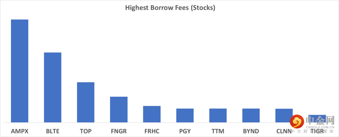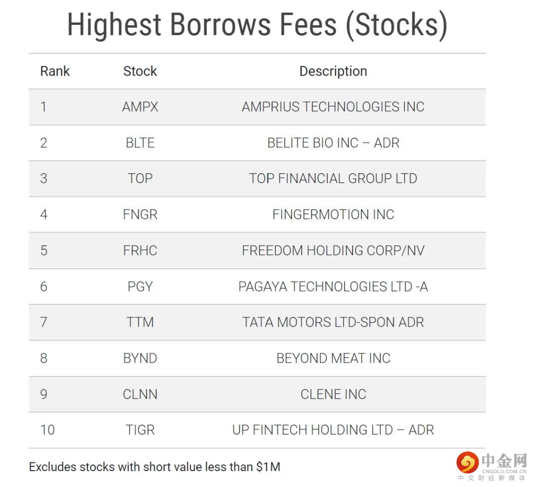 下表中列出的是2022/10/27具有最高借入费用的10个证券