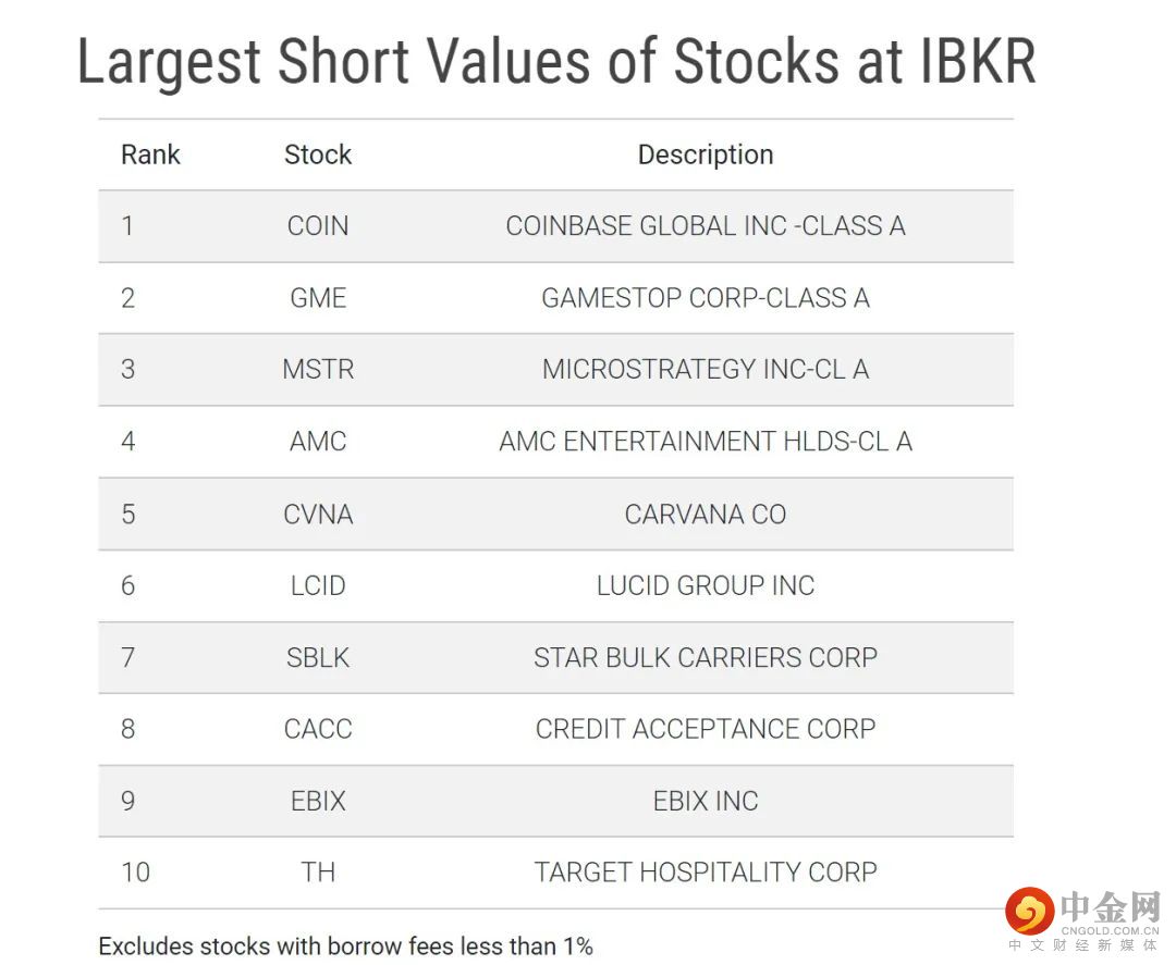 下表中列出的是2022/10/27最大做空值的10个证券
