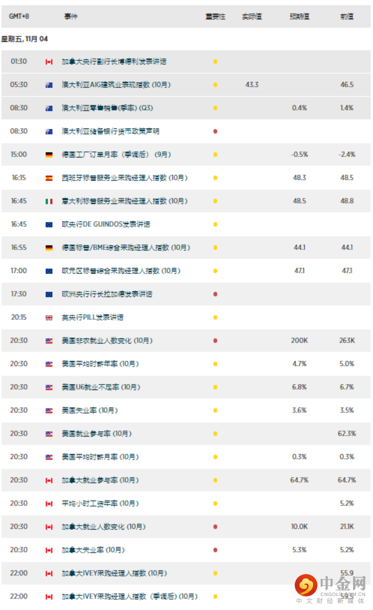 澳洲联储政策声明、美国非农报告、加拿大就业数据。