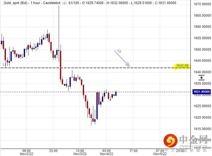 可以部署在$1,642美元左右建立淡仓盘,短线看淡金价一线至$1,609美元水平后止赚,止损在$1,650美元。