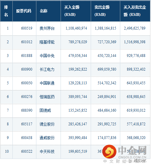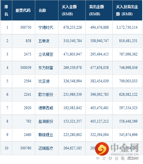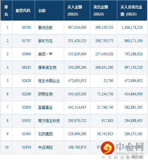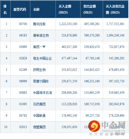 沪深港通十大成交活跃股
