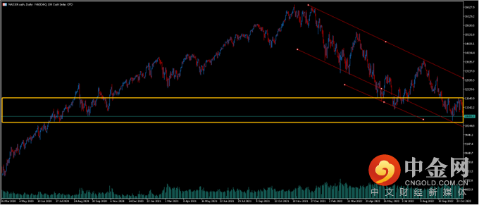 从技术面判断,纳指(NAS100)已经进入支撑位区间(10,800附近),该水平也是2020年8月的支撑线,所以目前的纳指已处于26个月最低水平。