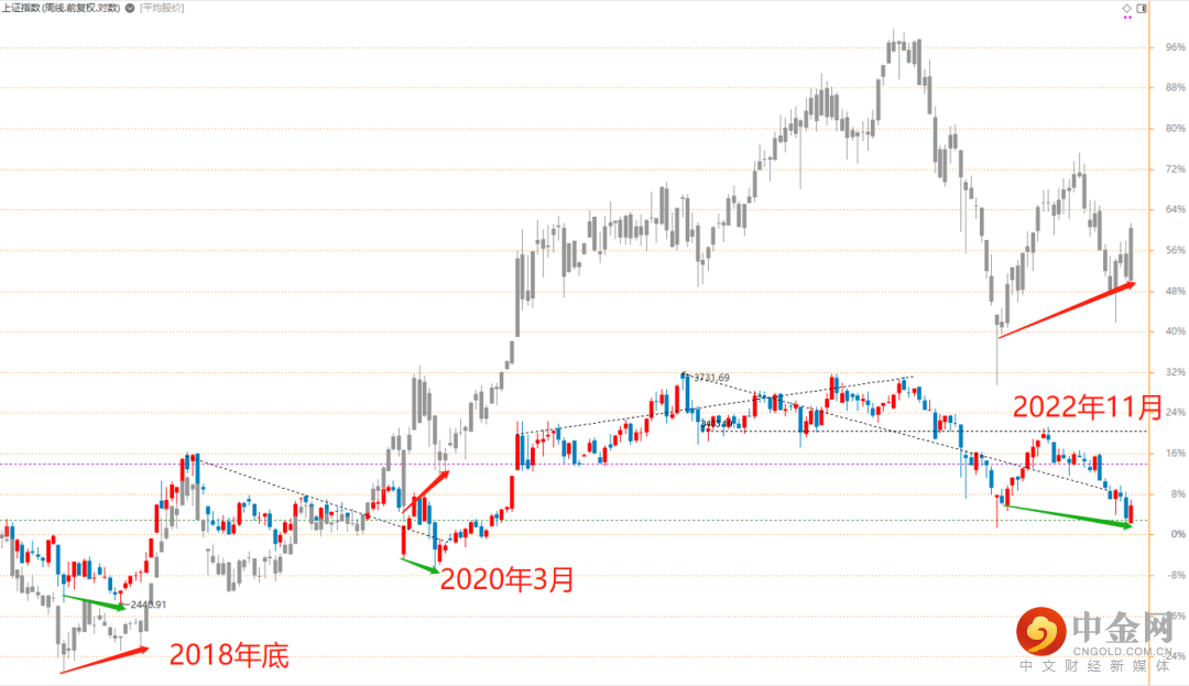 2018年到现在,大盘经历了3次重大的底部,第一次是2018年去杠杆,全年下跌趋势;到10月份大盘探底2449点,第一波大跌驱动来自创业板的外延并购谎言塌方,三年的业绩兑现期换来一堆垃圾,当时100万的账户如果买了太多创业板,打开剩下十几万米的大有人在,在10月稍作修正后,大盘继续探底,到2018年底见底2440低点,底部形成。