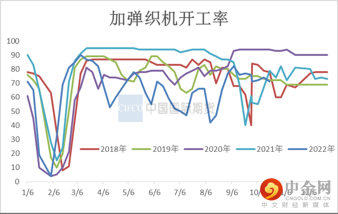 10月主要利多因素在于双十一的订单集中下单,“寒潮”“双十一”对纺织终端需求的带动作用还是比较有限的,尽管一定程度上会刺激部分需求的提前释放,但难刺激需求量的明显提升,尤其是内销方面,而外销方面则可能受欧洲能源紧缺影响而提升一些取暖产品的需求。10月底随着双十一预售的开启,下游总体生意也开始出现拐点。从成品销售方面,双十一预售开始,大部分准备销售的成品已经陆续完成,反馈到前道工序织造企业来说,意味着从10月底到11月初这段时间开始除了尚在完成的老订单之外,新订单接单会逐步减少。11-12月纺织终端的需求预计偏弱。按季节性,11月份是需求空档期。进入12-1月份则是外销以及明年内销春季订单下单的时期,这些订单会在年前做一部分,剩下的年后完成,这也在一定程度上支撑了年前下游的整体开机率。但是今年预计情况会有不同,一方面明年国内春季面料的订单下单预计会保持谨慎,因为春装销售周期本来就短,市场担心如果有突发疫情影响,销售周期会进一步缩短。而海外服装及面料批发商正面临极大的库存压力,不得不削减远期订单以及延缓提货,春节前后的外单预计仍旧会比较惨淡。