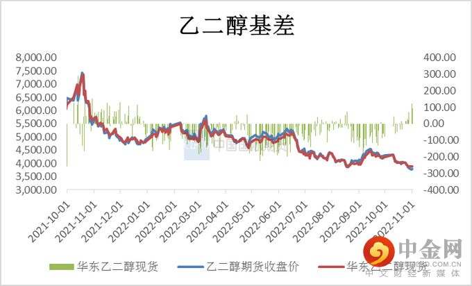 乙二醇受榆林化学60万吨新装置试车欠佳以及沃能减产消息影响,月末盘面减仓上行,显性库存又大幅回落,现货市场心态有所提振,现货基差走强明显。